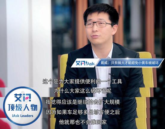 戴威:一开始我非常着急伤心,后来慢慢想通了。这个世界比我们想象得要大,我们是这个世界中非常渺小的一分子,能做的事情也很有限。我们应该继续扩大规模,利用我们的资源去让更多的老百姓接受这样的概念,让更多的老百姓来使用这样的单车。我相信任何新生事物刚诞生的时候都会面临各种各样的挑战和不适,包括现有的制度对它的冲击。
