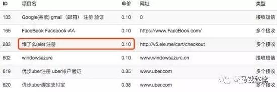 在这个平台上,你只要提出需求,比如注册饿了么账户,就有卡商满足你。通常情况下,一条外卖账户的验证短信,仅需要0.1-0.2元。