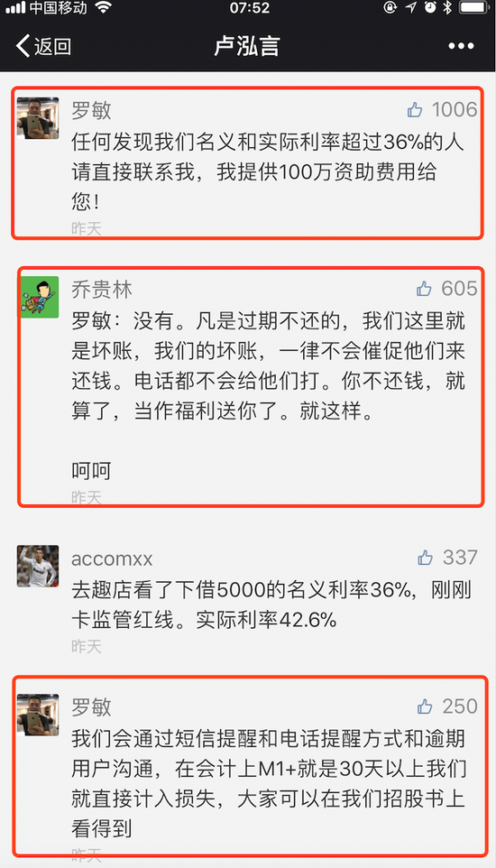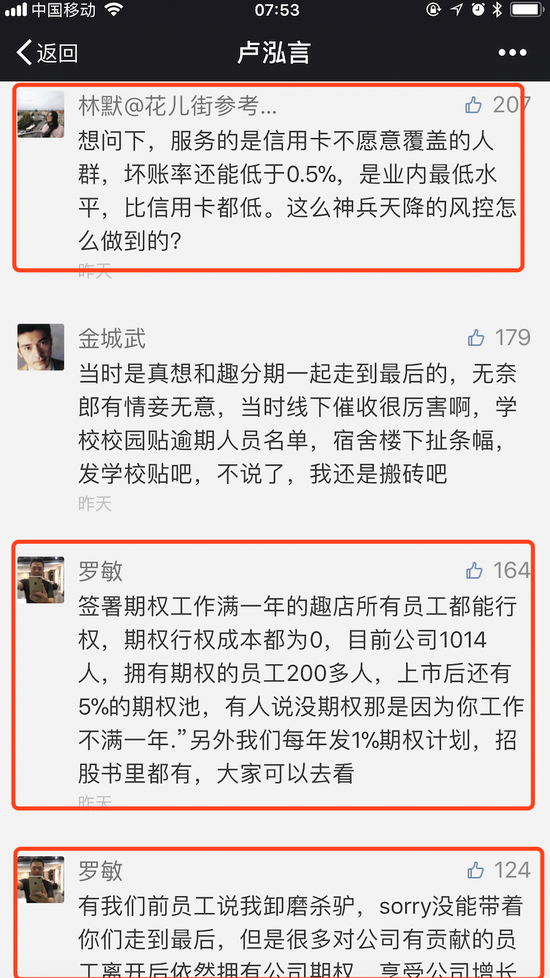 还有很多人表示,要跟趣店借点钱花,反正“你不还钱,就算了,当作福利送你了”。也有人说:“最怕空气突然安静,最怕老板突然回应。”