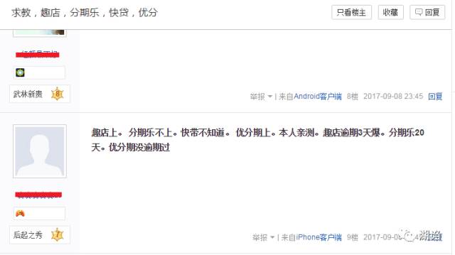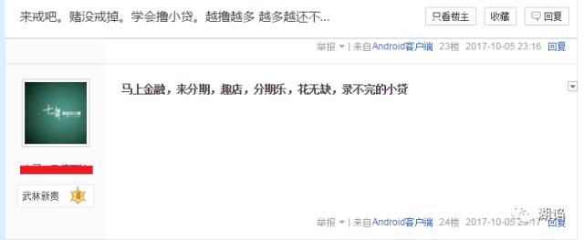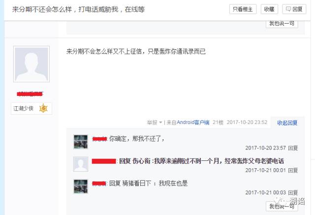 答:由于湖诌没有做全范围的用户调研,所以只能通过“戒赌吧”用户的日常发言,推测是很多赌徒在使用大量小额贷款APP借取现金,程苓峰说的“有很多人会在很多平台借钱,借东仓补西仓,最后利滚利,无法偿还,甚至跳楼”并非虚言,而趣店正是这些平台中被使用次数较多的一个。