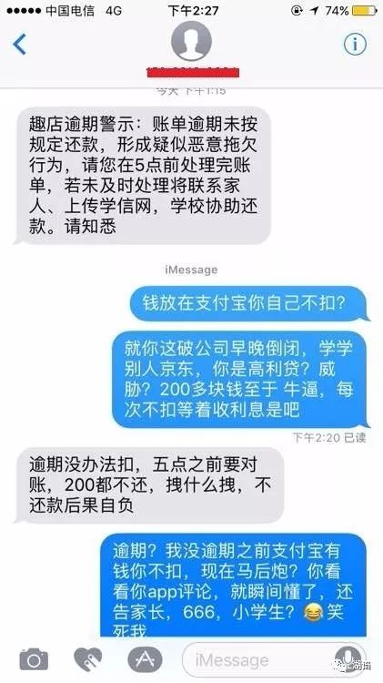 答:趣店是有催收机制的,而且员工在追债时态度并不像罗敏说的“不追讨,不逼债”,具体手段包括电话频繁通知学校、父母、配偶等,甚至还有威胁起诉等。