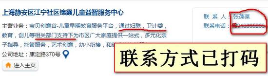 再一方面,张葆葆的“宝贝创意谷”商标是注册在“上海童领企业管理有限公司”下面的,而这家公司的经营范围唯一沾边的是儿童游乐场,也没有幼托资质。