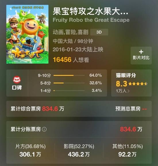 而在实际的票房表现方面,这些由光线出品或者引进的动画电影,既有《大鱼海棠》《你的名字。》这类票房超过5亿的爆款,也有《我叫哀木涕之山口山战记》《果宝特攻之水果大逃亡》、《大护法》这类票房惨淡或者险些亏本的动画电影项目,总体来说还是有起有落。