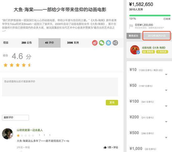 比如2016年7月上映的《大鱼海棠》。2004年,导演梁旋将自己的一个梦做成了一部动画短片;2005年,他和张春一起创立了彼岸天,希望能够制作动画电影;2007年,彼岸天开始制作《大鱼海棠》,却在2010年因为资金问题停工……直到2013年彼岸天开始搞众筹,并引发光线的关注后,这个动画电影项目才得以继续进行。