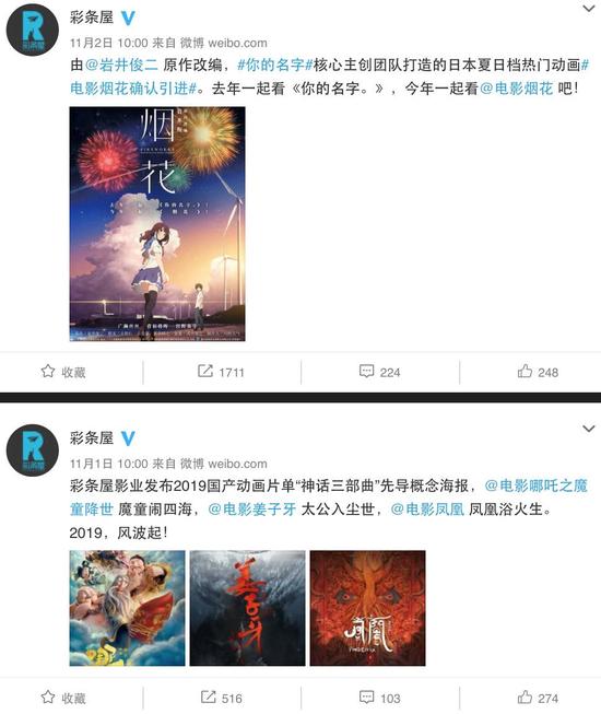 2016年,《大鱼海棠》《你的名字。》让光线尝到了甜头。据悉,《大鱼海棠》的成本仅有3000万人民币,而《你的名字。》的引进成本也只有1900万,然而正是这两部动画电影爆款,最终却都收获了超过5亿的票房,实乃“以小搏大”的典范。