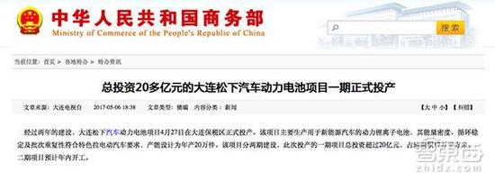 2015年末,在三星与LG的动力电池工厂先后落成之时,松下姗姗来迟,对外宣布将在大连保税区投资500亿日元兴建动力电池工厂,预计17年底一期工程完工投入生产。今年5月,这一工厂宣布投产,比预计时间提前了5个月,生产的电芯“满足特斯拉电动车要求”。