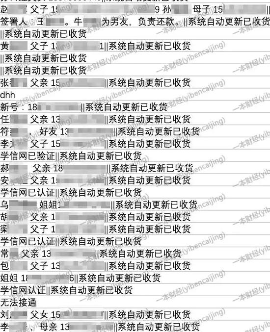 该数据维度极细,除学生借款金额、滞纳金等金融数据外,甚至还包括学生父母电话、男女朋友电话、学信网账号密码等隐私信息。
