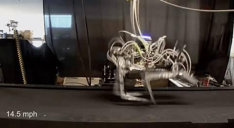 再比如另一个网红机器人“猎豹”。这款机器人用四足奔跑,可以达到时速47公里。用机器的方式超越了所有哺乳动物的运动极限。