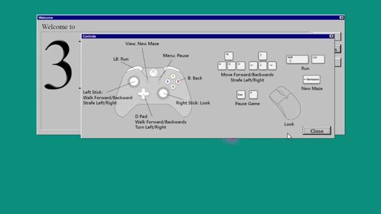 迷宫的开始阶段是一个windows的logo,过程中还会遇到关于OpenGL的漂浮LOGO和墙面,地上时不时的出现移动着的小老鼠,途中碰到机关还可以图像翻转,最后走到笑脸处进入下一关(其实是从头开始)。