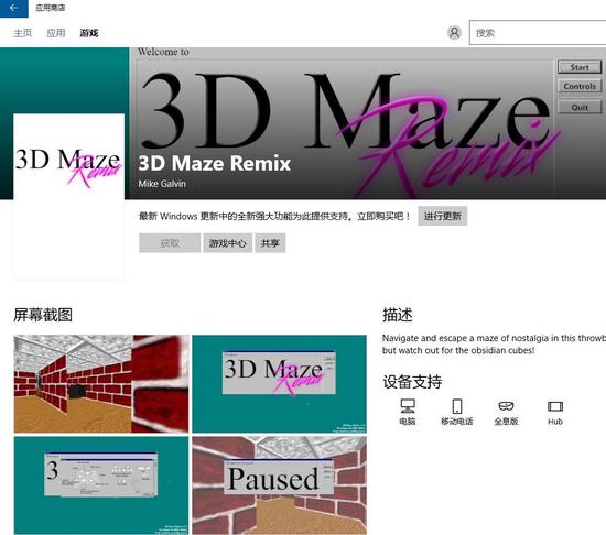 不过也不用沮丧,因为有个哥们已经把三维迷宫做成了一个正式的游戏:《3D MAZE REMIX》。它不但支持Windows、OS X、Linux三个平台,还已经登录微软的应用商店。