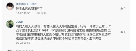 在这场比“谁是接盘侠”的游戏中,先入场者拼命地为钱宝网当着水军和布道者的角色,以期击鼓传花吸引来更多的入场者,让自己免于最后接盘。于是你可以在那些质疑钱宝网是骗局的文章下面看到一些人对于钱包网和张小雷近乎疯狂和愚昧的拥护。
