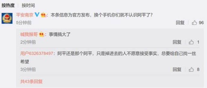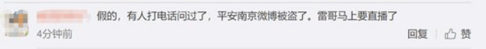 然而令人无语的是,在“平安南京”发布的这则消息后。该条微博的评论中居然出现了令人啼笑皆非的一幕,许多不愿意相信事实真相的投资者竟怀疑平安南京的官方微博被盗: