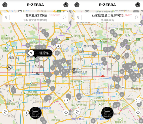 懂懂笔记通过连续多日观察电斑马APP发现,2017年12月中下旬,电斑马在北京市周边地区,如望京、昌平等地还有零星可以使用的车辆,而到2018年1月7日,电斑马在北京市的所有站点都已进入无法使用的灰色状态,甚至连此前一直引以为傲的北京吉利学院也已无处寻觅可用车辆。