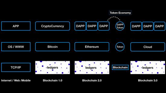 我们做这样的区分是因为,区块链技术看看成是互联网发展20多年来的一次大跃迁,它是新出现的、与万维网(WWW)并列的基础性技术协议。