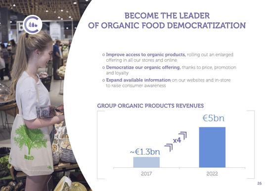 在2022转型计划当中,对于生鲜板块定下的目标非常高,具体是在有机食品这一块,明确提出不仅要提升生鲜食品质量,还要做到产地溯源,继续在整个链条中努力排除争议的物质出现。
