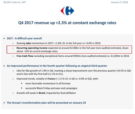 而在上周公布的2017年Q4财报中提及,将2017年一般性营业净利润下调到了20亿欧元,同比下滑15%。