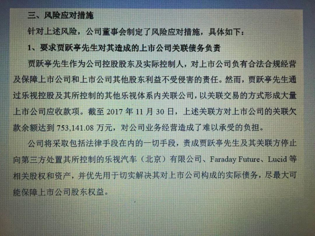 先看乐视网关联方因素,主要是乐视控股、乐视汽车及贾跃亭本人。