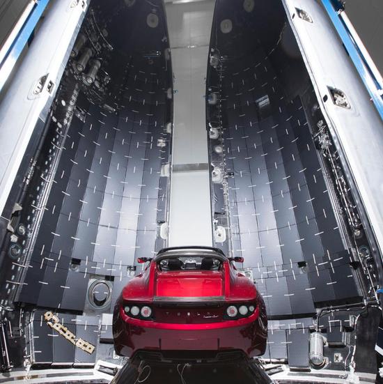 我们再回到此次猎鹰重型火箭的发射。说完最大动力产生的原因之后,与动力密切相关的载重也是此次发射最大的卖点。据报道,其低地球轨道(LEO)的最大有效载荷高达63.8吨,但在实际发射中,其负载的仅是一辆特斯拉Roadster跑车和一个叫做Starman的假人。我们在此不妨粗略计算一下,特斯拉Roadster的自重,加上Starman的假人的重量不可能超过3吨(已经最大预估值),即便如此,此次发射的载重也仅仅是猎鹰重型火箭有效载荷的1/20。