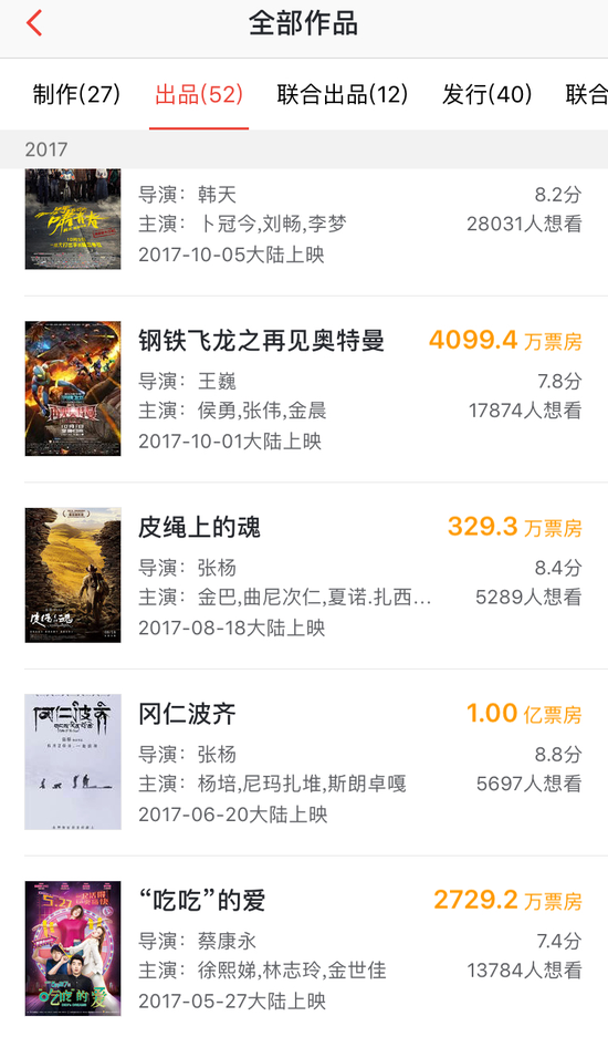 这或许就是万达2017年的主要路数:“广撒网、深积粮”,不把鸡蛋放进同一个篮子里,主控电影并不多,但是2017年大爆的电影背后基本都有万达的参与。