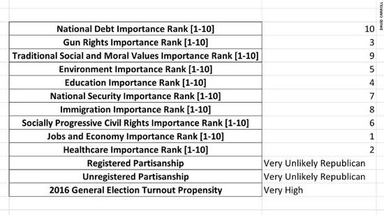 其提供的报告中写道,卡罗尔“不太可能支持共和党”,在“枪支问题关注度”上得三分,在“国家安全问题关注度”上得七分,在“传统价值和道德操守”上得了九分。这份报告指出卡罗尔最关心的还是美国国债,这一项他得了十分满分。他在 Twitter 上公布了这份报告,说,“我自己给自己打分也不过如此,可能还没它打得准。”