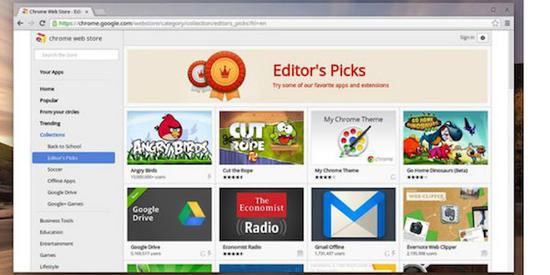 给不熟悉 Chrome OS 的朋友普及一下:现在网页技术发达,很多文字编辑、图像设计甚至游戏软件,都可以被网页取代。而你肯定用过或者听说过 Chrome 浏览器,它也有一个应用商城,支持各种网页 App 和插件。