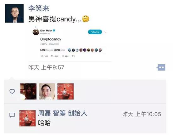而部分炒币网友却对此事非常上心,看到加密数字货币糖果(Cryptocandy)几个字就像疯了一样,甚至还要恭喜自己的男神喜提糖果。