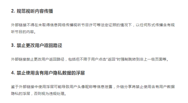 5月18日,腾讯官方发布《关于进一步升级外链管理规则的公告》,明确指出“外部链接不得在未取得信息网络传播视听节目许可等法定证照的情况下,以任何形式传播含有视听节目的内容”。