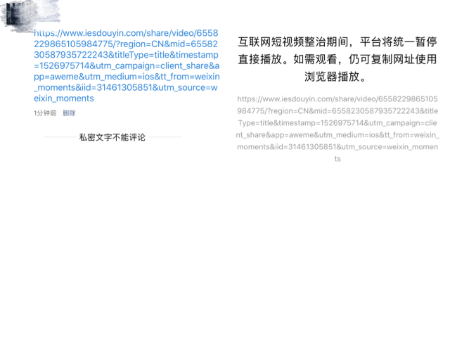 打开抖音,分享朋友圈,操作完成后,并不能看见录制的短视频,而是得到一串地址外链。