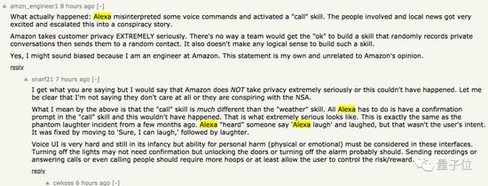 来自亚马逊工程师的defenseHacker News上Po出这个新闻才短短的11个小时内,就引发了500多条评论。有讨论要真有人监听的话,手机其实比智能音箱更容易;也有讨论其他家智能音箱也存在语音识别不准的问题。