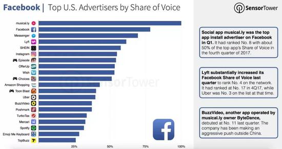 从上图也能看到,在Facebook全网里,musically是18年第一季度最大的广告主。这就是字节跳动这家公司的核心能力和决心。