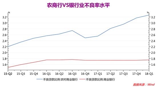 如上图所示,尽管商业银行整体不良率已经趋稳,但农商行不良率水平在2017年以来是不断恶化的。原因在于,实体经济去杠杆,整体属于结构性调整,有保有压,资质较差的企业首当其冲受到影响。