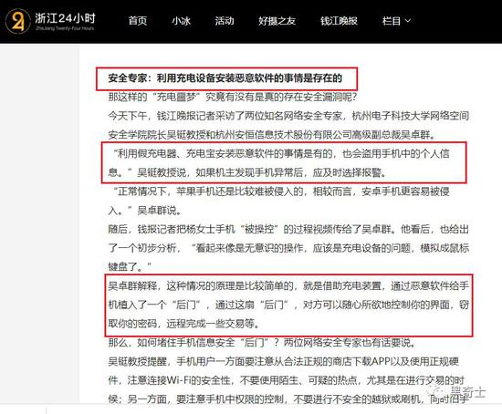 无论钱江晚报,还是所谓的“安恒信息高级副总裁”、“杭州电子科技大学网络安全学院教授”,他们所谈到的“利用假充电器、充电宝安装恶意软件”针对的都是安卓系统,而且,即使是安卓系统,他们所说的也不准确。