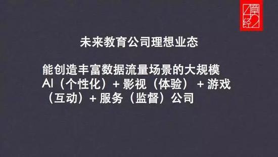 所以,能创造丰富数据流量场景的大规模“AI+影视+游戏化+服务”的公司,是未来教育公司最理想的业态。想成为这样的业态很难,今天的阿里、腾讯就很像这样的业态。比如,阿里知道你什么时候买了什么东西,最近一年还款状况、信用卡额度、水电费的缴费情况等等。