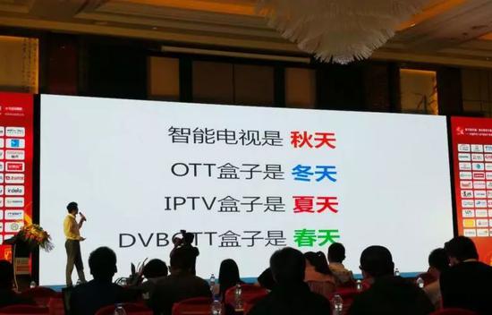 目前OTT盒子的产品功能已经完全被智能电视一体机取代。经过前几年的增长,智能电视一体机的付费、广告、应用分发等生态已经形成良性循环。而电信运营商办宽带送电视盒子的销售策略,尤其是近年中国移动在拓展宽带业务上不吝砸钱,则推动IPTV随着宽带的普及持续增长。爱奇艺OTT渠道运营总监邹伟之前有一个生动的描述:OTT盒子进入了冬天,一体机进入了收获的秋天,而IPTV则仍处在夏天黄金发展期,DVBOTT盒子则迎来春天。