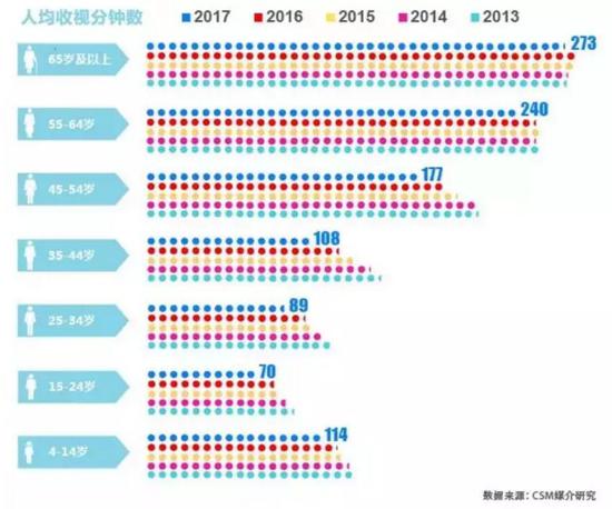 数据来自国家统计局网站据CSM研究,2017年,中国人平均每天收看电视139分钟较前一年急剧下滑13分钟,一年内下滑的幅度顶过去三年。