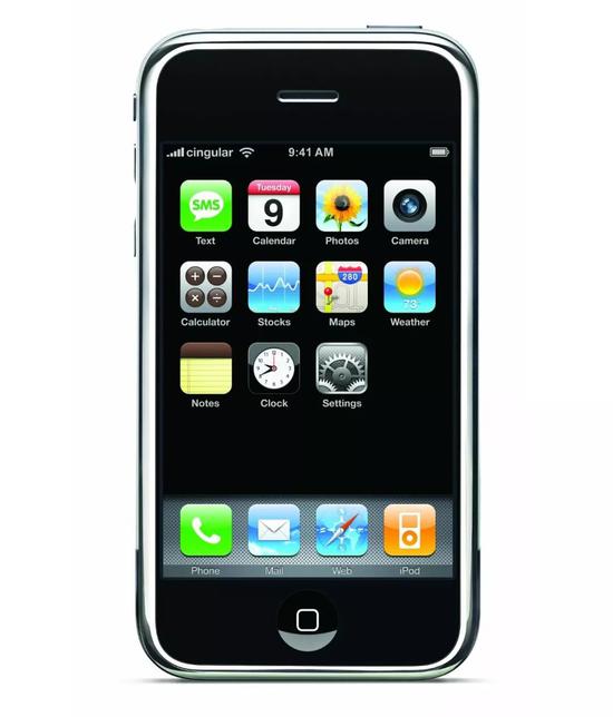 2007年,第一部iPhone诞生,键盘消失,手机变成一块巨大的屏幕。