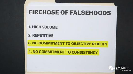 Vox总结了这些谎言的特别之处:不怕与显而易见的事实相悖,甚至不怕出自同一人的前后矛盾。换句话说,撒谎的人并不以“让谎言尽可能地伪装成事实”为中心。这背后的“终极目标”要“险恶”的多:通过不断重复这样的过程,他们构建起一套新的价值观,即“真相”也无外乎是一种观点或立场,按照自己的出发点来凭空“构造”出一些“事实”来并不是错误,是每个人都会去做的,因此无可非议。