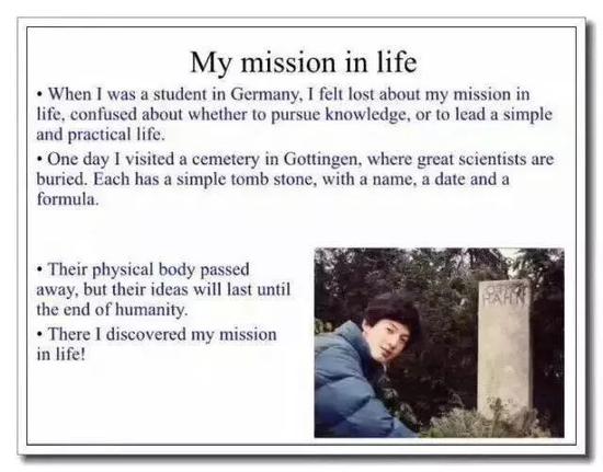 那片墓地埋葬的都是伟大的科学家,墓碑上都只有一个名字、一个日期和一行简单的公式,马克斯玻恩是其对波函数概率的一个分析,Otto Hahn的墓碑上是一道核反应公式······“他们的肉体死去了,但是思想却永恒地留在这个世界上”,他说,在那时起,他了解到自己人生的使命。
