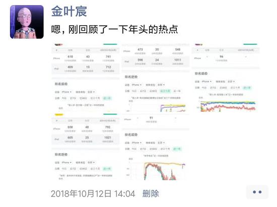 一条发在10月12日,一条发在双十一那天。10月12日的那条朋友圈,我专程去回顾了一下的产品是“各种狼人杀”和“同桌游戏”。刺激我去做研究的事件就是音遇的出现。