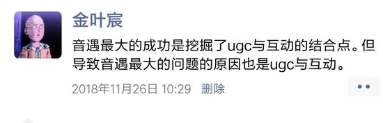 我在11月26日曾经发过一条朋友圈,直指音遇最大的创新来自UGC与互动,而最大的问题也是来自UGC与互动。因为音遇驱动用户留存的目前不是内容不是算法,是funny。
