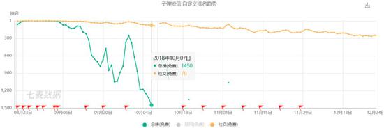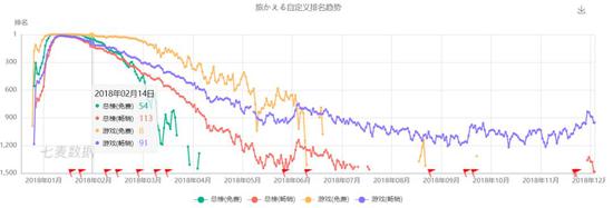从这张图里可以看到,旅行青蛙整体的流量下滑速度非常快,大概在榜单上坚持不到1个月,当然娃儿子当时一度非常火。