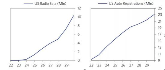 在经历了第一次世界大战以及之后的经济衰退,美国经济开始经历了由科技引领的快速增长。美国中小城市的城镇化以及中产阶级的崛起,给新的技术带来了巨大市场。比如那时候的收音机数量从1922年的6万台增长到了1928年的750万台。汽车行业快速增长,到了1929年,美国实现了2300万的汽车保有量,每五个美国人中就有一人拥有汽车。科技进步驱动了生产效率的提升,1922到1928年美国工人生产效率提高了75%。