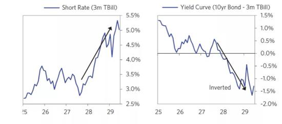 来到1928年,美联储开始收紧货币政策。从2月到7月,利率水平从1.5%提高到了5%。美联储希望放缓信贷的增长,而不影响经济基本面。到了1929年8月,美联储再次加息到6%。由于短期利率曲线走平,流动性开始下行。持有短期现金类资产的回报上升。由于资金价格的上行,持有现金更加有吸引力,而非持有长期资产或者风险资产。资金价格上行导致大量资金从金融资产撤出,资产价格开始下跌。这也推动了财富效应的负反馈。泡沫开始被刺破。