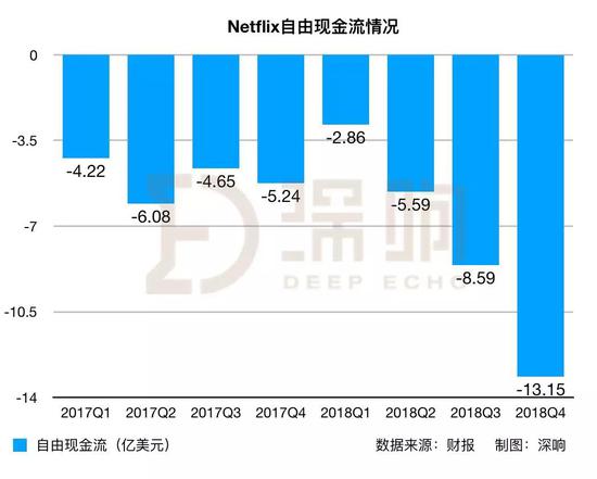 明显可以看到,2018年以来,Netflix的现金流情况是持续恶化的。