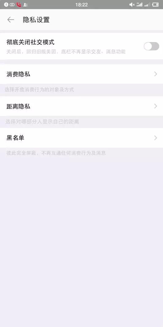用户可从距离、消费等纬度进行隐私灵活的隐私设置(比如开放或隐藏某笔消费或所有消费),完全没有社交需求的用户可以一键关闭社交模式,回归原版美团。
