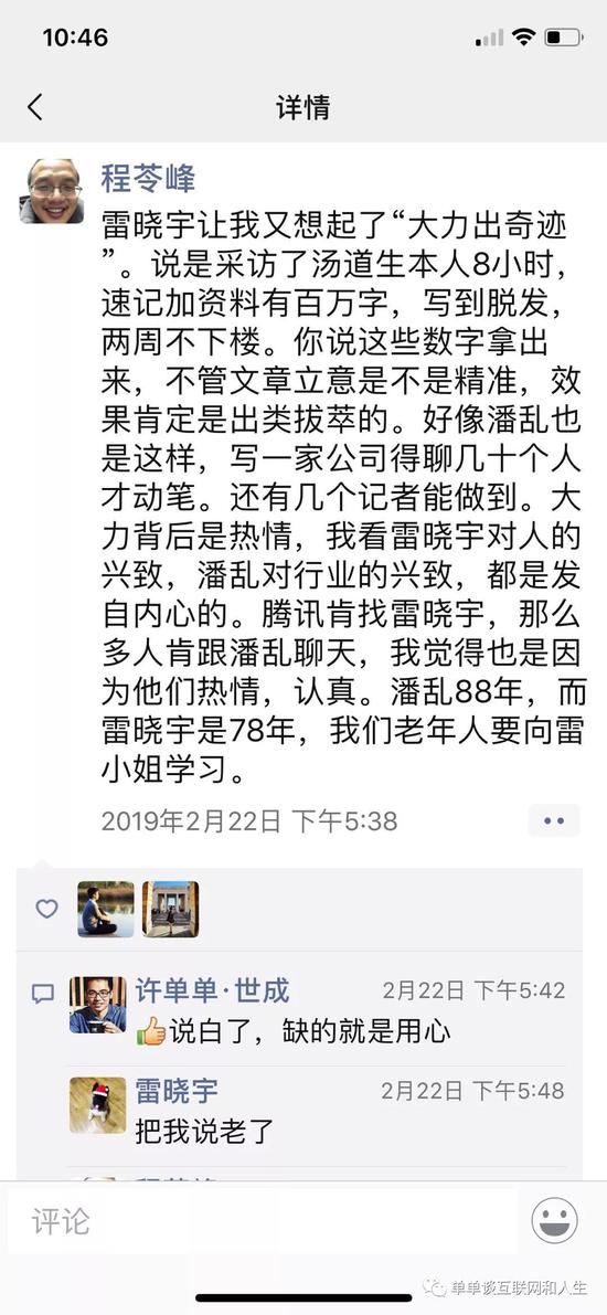有个自媒体写手叫雷晓宇。前两周写了篇腾讯汤道生的文章,被刷屏了。