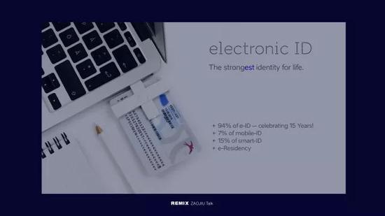 第二个是数字ID项目。爱沙尼亚所有人的身份证,都是像这样的一张卡,一张数字身份证,它不仅仅是你身份的证明,更是你进入数字世界的网关,就好像阿里巴巴的密码一样,来证明你是你,以及享受各种数字世界的服务,和其他数字公民进行交流。