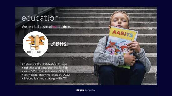 然而,爱沙尼亚刚独立,没有互联网基础设施,没有互联网人才,没有ICT(Information Communications Technology,信息和通讯技术)人才,于是第二任总统雷纳特·梅里(Lennart Meri)在1997年又提出了一个“虎跃计划”,为爱沙尼亚的学校提供100%的互联网接入,为所有老师,从幼儿园老师到大学老师,提供最基本的互联网和ICT的教育。