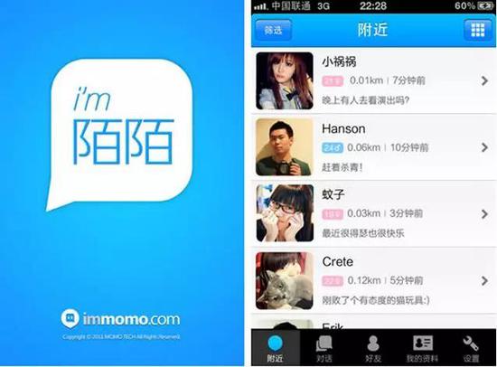 主打陌生人社交,自2011年8月陌陌正式上线推出以来,笼罩在微信头上那顶灰色大帽便慢慢消失不见,被其取而代之。