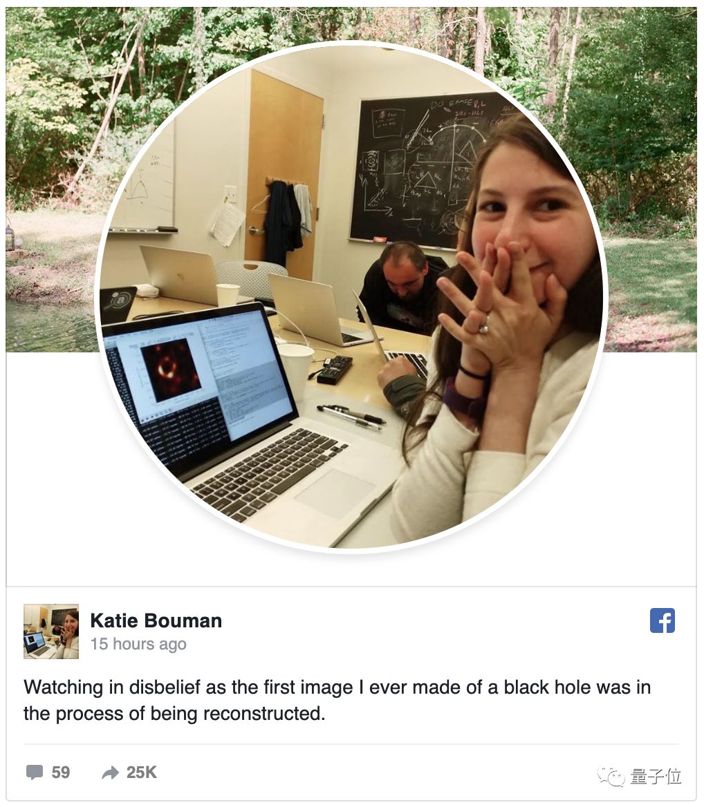 这位小姐姐名叫Katie Bouman (凯蒂 · 布曼) ,今年29岁。她带领算法团队“洗”出了这张照片,也成了第一批“看到”黑洞的人类之一。